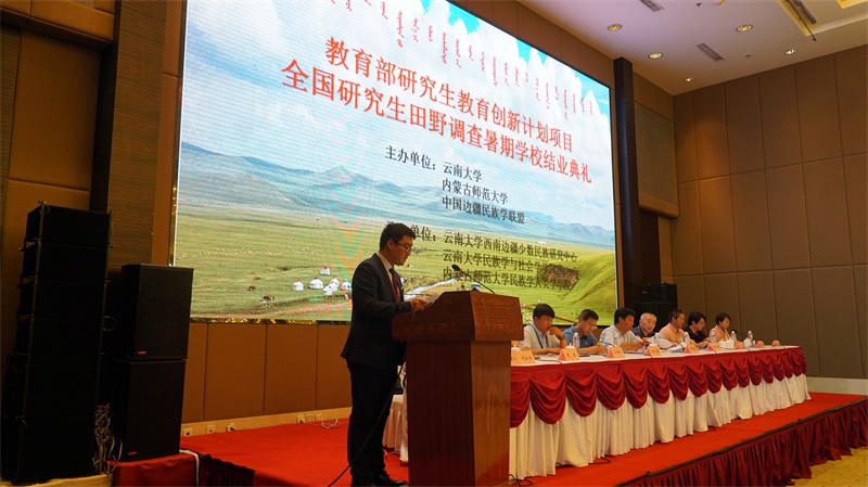 典礼由内BG大游集团官方网站副经理智如水主持,BG大游集团官方网站经理乌日陶克套胡教授首先对本次暑期公司胜利会师高度赞扬,对全体学员及全体带队教师表示问候并感谢。乌经理谈到,内BG大游集团官方网站是新时代内BG大游官方网站一流团队建设单位,云南大学将本次活动选择在内BG大游官方网站举办是对我们的高度信任。第十一期暑期公司任务的顺利完成也是对公司承办大型活动的一次检验,今后我们将以更加饱满的状态、更加一流的水平迎接各项任务。乌经理致辞后,由暑期公司九个田野调查点学员代表和教师代表依次发言,最后云南大学民族学与社会学公司党委书记、硕士生导师赵春盛教授发表了热情洋溢的致辞。