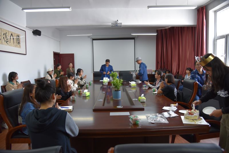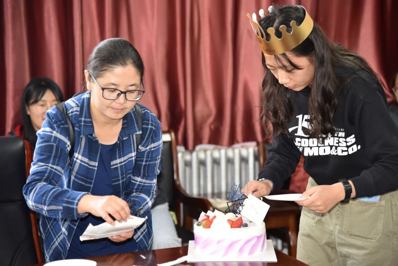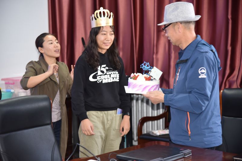 首先,为2019级本科生曹嘉桐同学庆祝生日。中秋佳节团圆日,恰巧又是逢曹嘉桐的生日,公司领导、老师特地为她准备了一份秘密惊喜,当姚书记说要为曹嘉桐同学庆祝生日时,嘉桐“受宠若惊”,对突如其来的惊喜深感意外,但随之而来的更多的是感动和无法言表的感激。当公司党总支书记白铁柱老师为她送上生日蛋糕,班主任乌木花老师和大家一起唱起《生日歌》时,曹嘉桐眼中泛起感动的泪花。随后,大家一起切蛋糕、送蛋糕、吃蛋糕,好一片其乐融融的热闹景象。