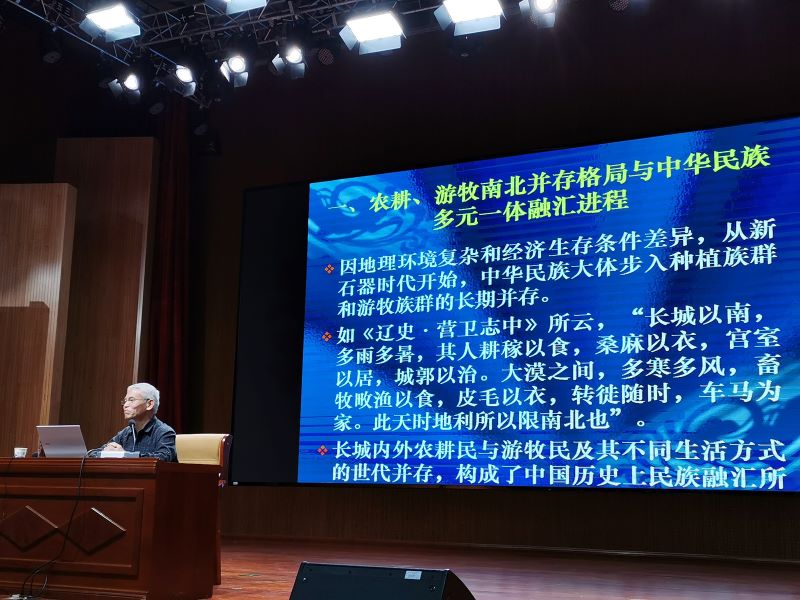 李治安教授讲座由四部分内容展开,分别是“农耕、游牧南北并存与中华民族多元一体融汇进程”、“后期的汉族、蒙古族、满族轮流为主和元‘内蒙外汉’、清‘内汉外满’”、“驳‘崖山之后无中国’”、“重视民族融汇第二条基本线索与江南、北方民族的角色”。讲座对中国历史上的四次民族融汇做了梳理探讨,认为民族融汇是理解中国历史发展的第二条线索,并批驳了“崖山之后无中国”的论点以及征服王朝论、新清史的部分理论等,认为中华文明是农耕游牧并存、多元融汇一体的结果。李治安教授对中国历史发展进程的独到见解不仅为年轻学者们的研究答疑解惑,同时还为新时期民族史学科未来的发展指引了方向