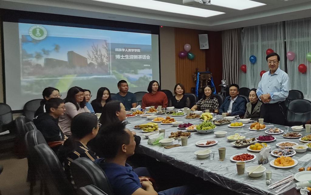 迎新茶话会议程分为两个阶段,首先由主持人,2019级博士生苏玉明介绍了与会领导和老师,之后由二年级和一年级同学分别做了自我介绍,互相认识,并就学业上的经验和困惑进行交流。聆听了同学们的交流后,公司党总支书记包凤兰代表公司领导班子发言。包书记指出,学业是没有捷径的,作为博士研究生要勤读书、苦读书,坐得住冷板凳,经得起寂寞。同时,作为民族学一级学科的博士研究生,一定要牢牢掌握民族学的研究方法,以民族学理论范式去撰写论文,才能在科研中有所收获。