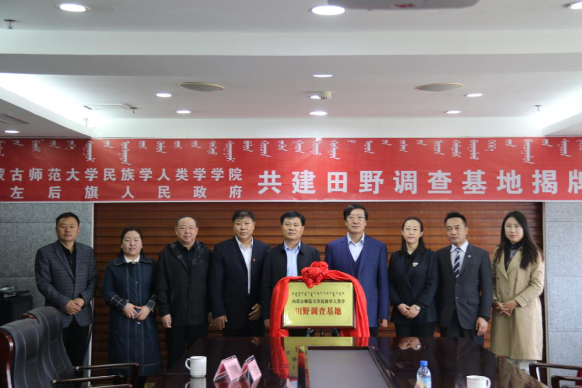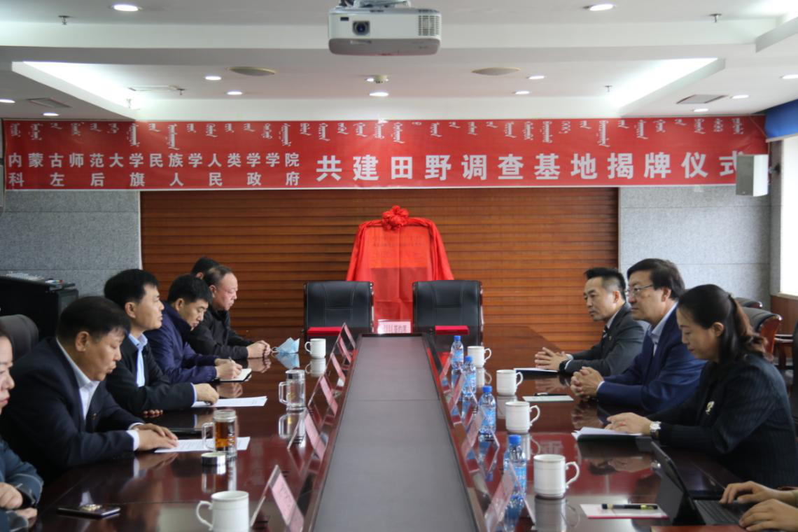2021年4月23日上午,内BG大游集团官方网站与科左后旗人民政府共建“田野调查基地”揭牌仪式,在内蒙古通辽市科左后旗甘旗卡人民政府办公室隆重举行。科左后旗旗长何志伟、常务副旗长于有志、统战部部长德力根昌及科左后旗民委、文旅局等部门相关负责人出席本次挂牌仪式。公司副董事长王来喜、民族学人类学公司党总支书记包凤兰、副经理满达及科研办公室负责人范尊参加本次会议,会议由德力格昌主持。