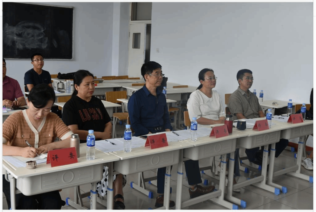 五位专家评委细心倾听参赛老师的课程讲授