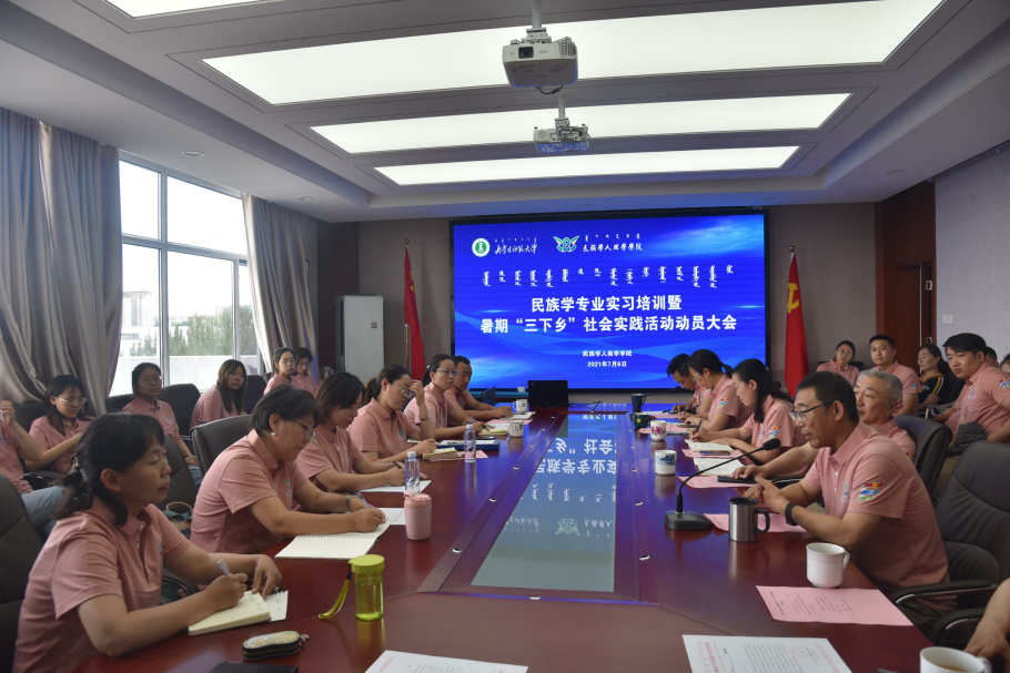 2021年7月6日下午3:00,BG大游集团官方网站民族学专业实习培训暨田野调查动员大会在公司607会议室隆重召开。纳日碧力戈教授、党总支书记包凤兰、经理乌日陶克套胡、副书记副经理阿荣、赵树冈教授、系主任张昆、行政教辅老师、各带队教师、2019级民族学全体本科生及部分研究生参加了会议。会议由满达副经理主持。