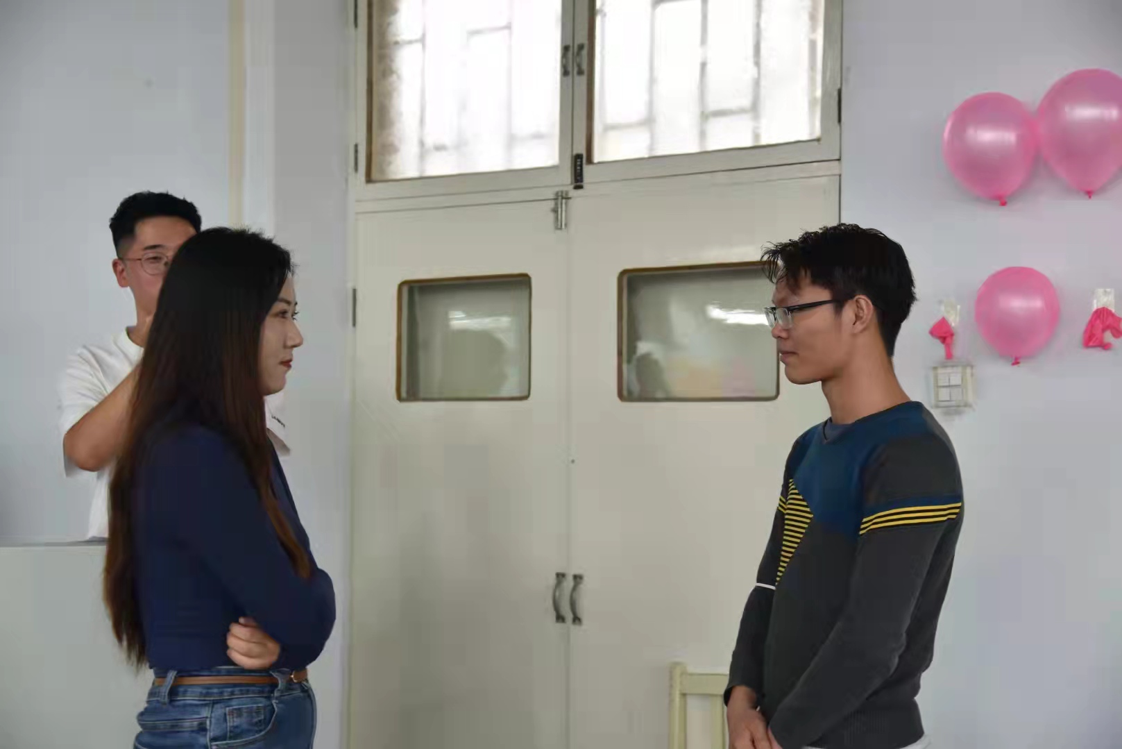 随后,刘榆萍同学主持师生互动环节。大家一起玩游戏,击鼓传花、扎气球等,教室里充满了大家的欢声笑语和浓浓的节日的氛围。