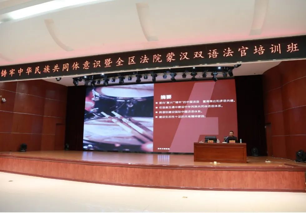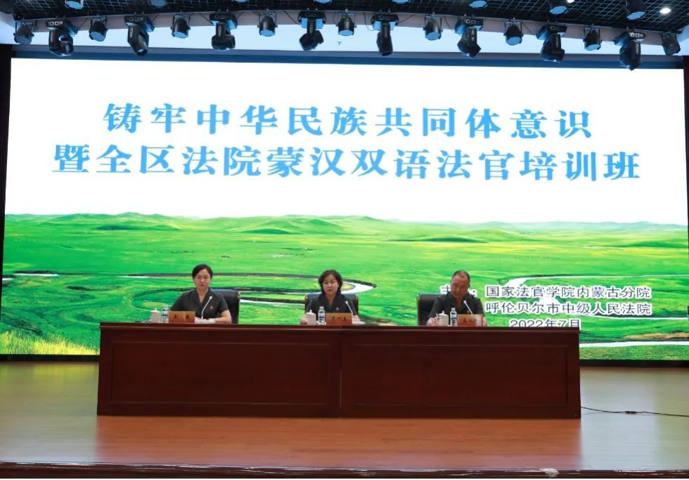 为深入学习贯彻习近平总书记关于加强和改进民族工作的重要思想,铸牢中华民族共同体意识,切实提高蒙汉双语法官的政治素质和司法能力,推进双语审判工作健康发展,7月26日,铸牢中华民族共同体意识暨全区法院蒙汉双语法官培训班在呼伦贝尔市中级人民法院开班,这是市中院蒙汉双语法官东部培训中心承办的首期全区法院系统干警培训班。市中公司党组书记、经理范巧兰,国家法官公司内蒙古分院副经理孟永平出席开班仪式,来自全区法院的62名双语法官及双语法官助理参加了开班仪式。开班仪式由国家法官公司内蒙古分院双语办主任刘燕主持。