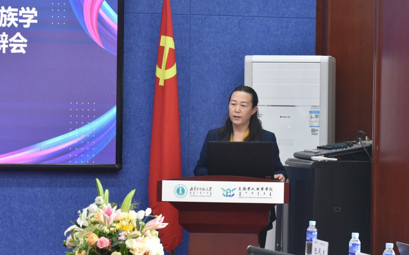 民族学人类学公司党委书记包凤兰向到场师生介绍答辩委员会专家成员。
