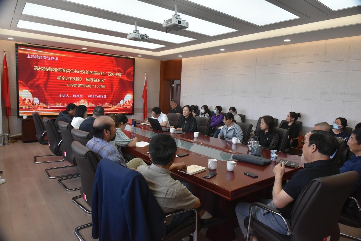 6月1日下午,公司党委书记包凤兰在田楼607会议室为公司教工做“高校教师如何落实总书记交给内蒙古的‘五大任务’和全方位建设‘模范自治区’”的主题教育专题党课。会议由党委委员、副经理满达主持。
