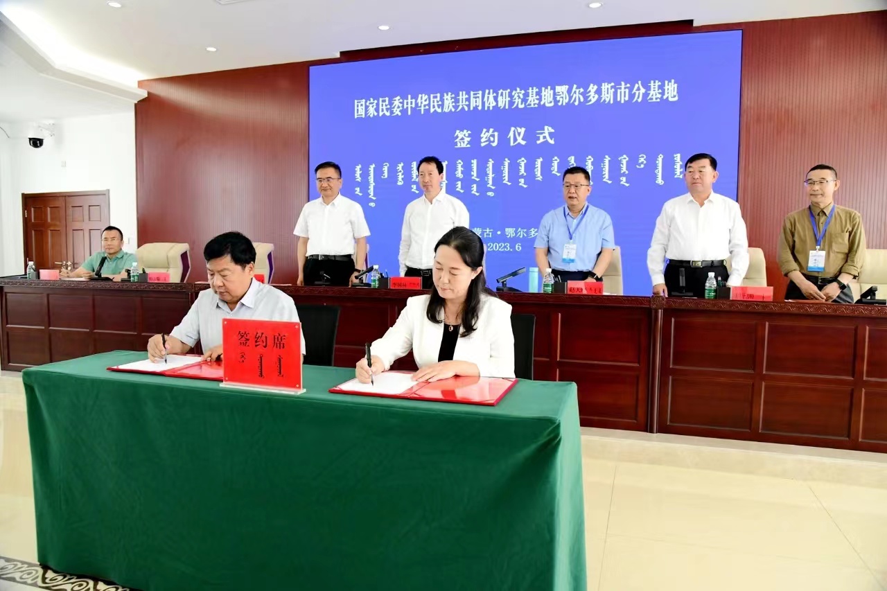 会议举行了国家民委中华民族共同体研究基地鄂尔多斯市分基地、内BG大游官方网站铸牢中华民族共同体意识教育实践基地揭牌仪式。额登毕力格与李树林共同为国家民委中华民族共同体研究基地鄂尔多斯市分基地、内BG大游官方网站铸牢中华民族共同体意识教育实践基地揭牌。特古斯与公司民族学人类学公司党委书记包凤兰、科技处(社科处)处长咏梅分别代表双方签署了《建立国家民委中华民族共同体研究基地鄂尔多斯市分基地的合作协议》和《内BG大游官方网站与鄂尔多斯市民委共建“铸牢中华民族共同体意识教育实践基地”合作协议》。