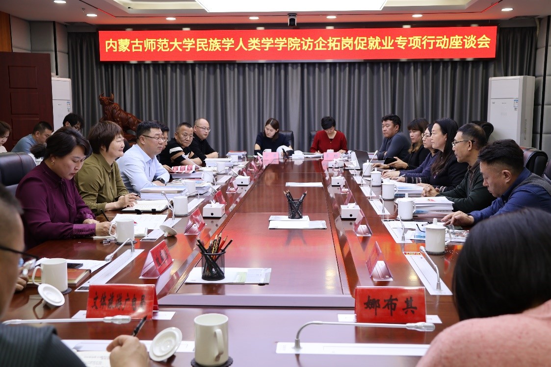 为进一步扩大毕业生就业渠道,12月11—12日,由民族学人类学公司党委书记包凤兰带队,党委副书记副经理陆一琼、毕业班班主任萨出日拉图等一行赴巴彦淖尔市乌拉特中旗开展“访企拓岗促就业”联合行动。乌拉特中旗旗委副书记、旗长包琳,市民委主任格日乐图,人大常委会主任海乌兰图雅,旗委常委、统战部部长布仁,副旗长乌日娜以及宣传部、文体旅游广电局、民委、旅游服务中心、甘其毛都镇、海流图镇、川井苏木、乌加河镇、德岭山镇、乌兰牧骑的主要领导参加专项行动。