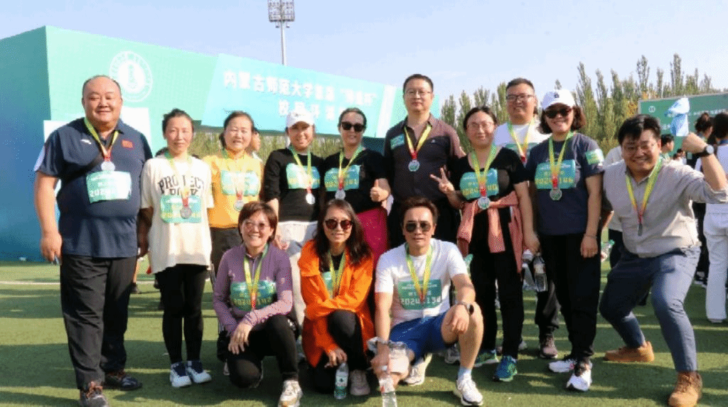阳光照耀下的乌兰湖波光粼粼,公司师生在湖边集结热身,绕湖而行。公司代表队整齐前进,他们一边舒展筋骨,一边欣赏湖畔的美丽风光。秩序井然的队伍引起内蒙古日报记者的关注并对公司员工进行采访。参赛选手王周璇和员工干部黄长江在接受内蒙古日报采访时,脸上洋溢着自信与喜悦。