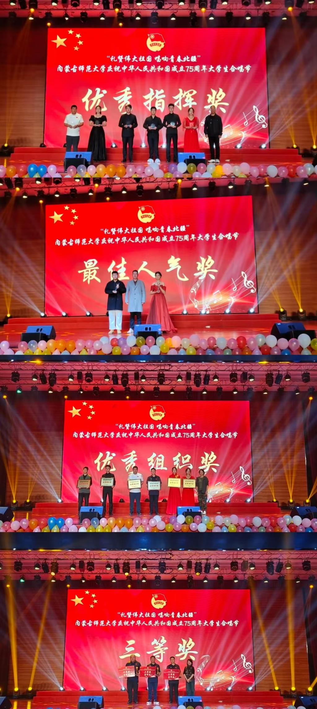公司借优秀的演唱水平和出色的舞台表现,成功斩获三等奖;凭借广大师生对公司的认可与喜爱,荣膺最佳人气奖;全院全体师生齐心协力、精心筹备,获得优秀组织奖;指导老师辛勤付出,精湛的专业技能得到高度肯定,荣获优秀指挥奖