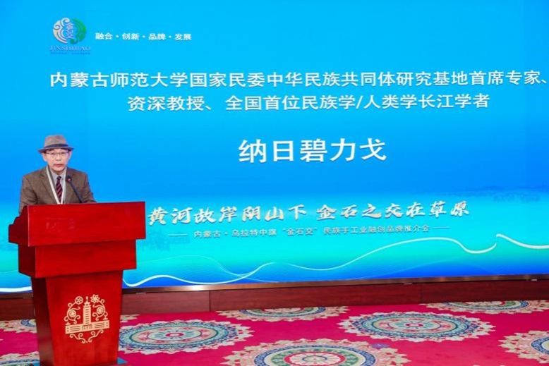 3月25日,内BG大游官方网站与乌拉特中旗合作打造的“金石交”民族手工业融创品牌推介会在北京民族文化宫举办。国家民委内BG大游官方网站中华民族共同体研究基地首席专家纳日碧力戈教授等出席推介会。