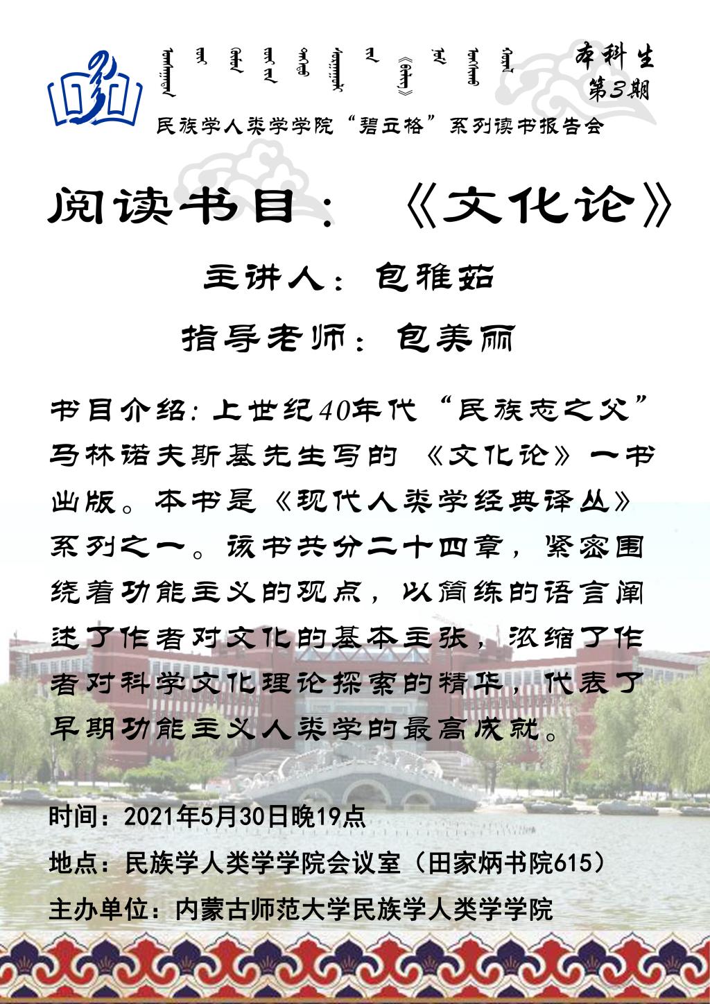 “碧立格”系列读书会本科生第3期预告