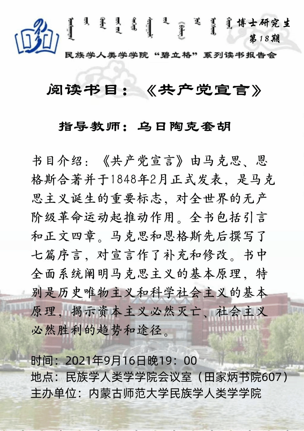 “碧立格”系列读书会民族学本科生1班 第1期预告