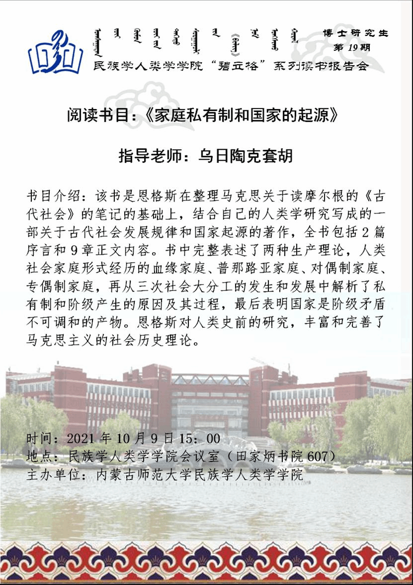 “碧立格”系列读书会博士研究生第19期预告