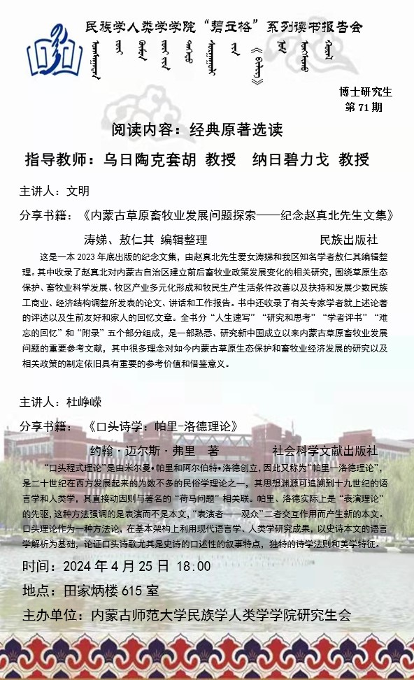 BG大游集团官方网站“碧立格”系列读书报告会预告博士研究生第71期