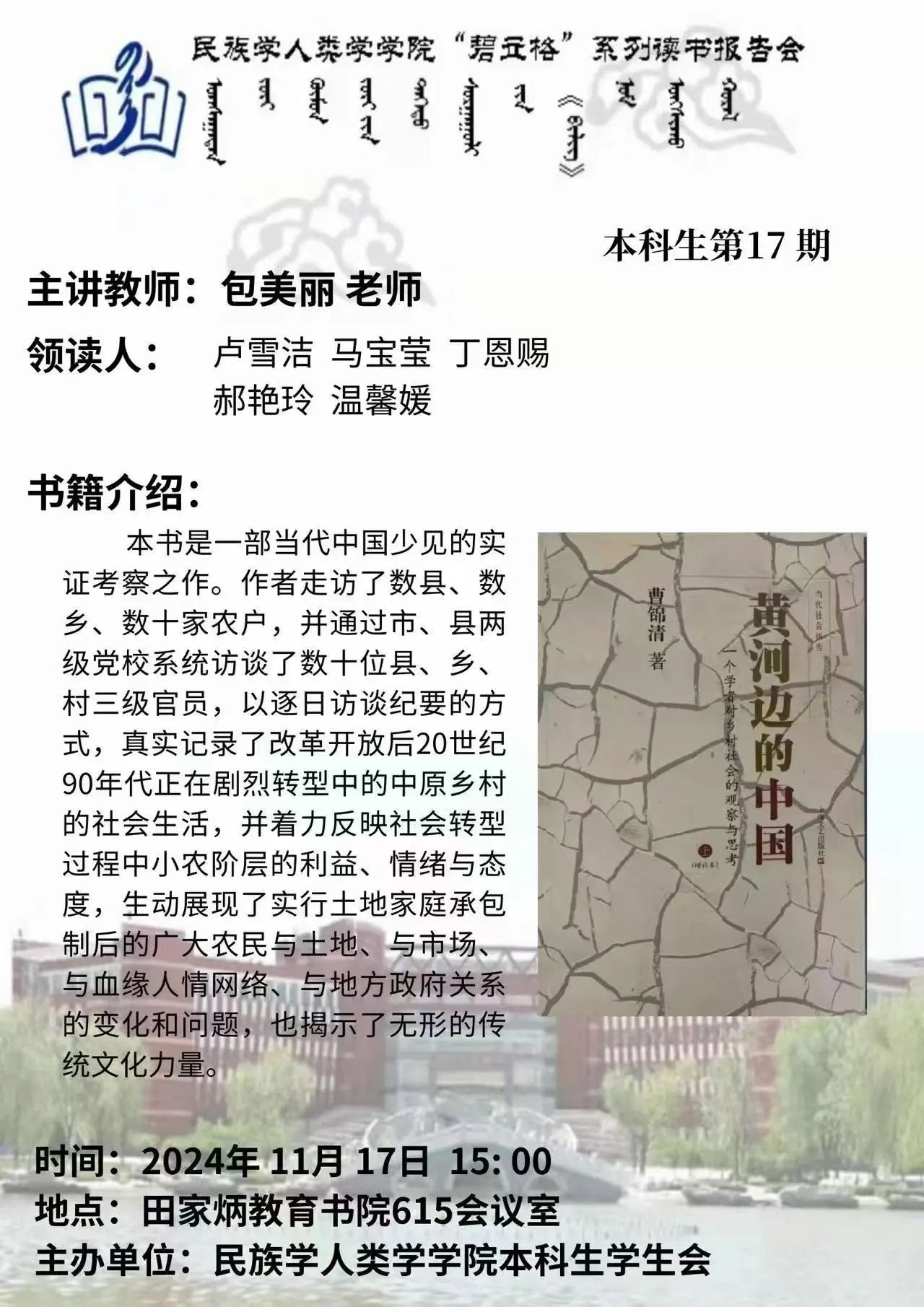 BG大游集团官方网站“碧立格”系列读书报告会预告 本科生第17期