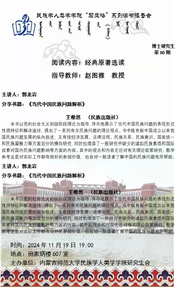 BG大游集团官方网站“碧立格”系列读书报告会预告博士研究生第80期