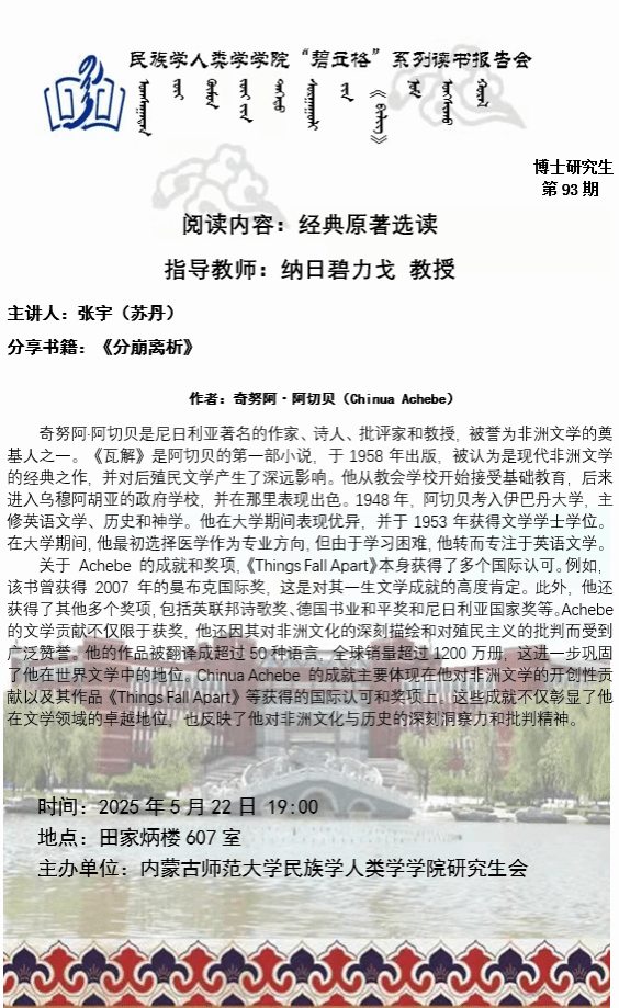 BG大游集团官方网站“碧立格”系列读书报告会预告博士研究生第93期
