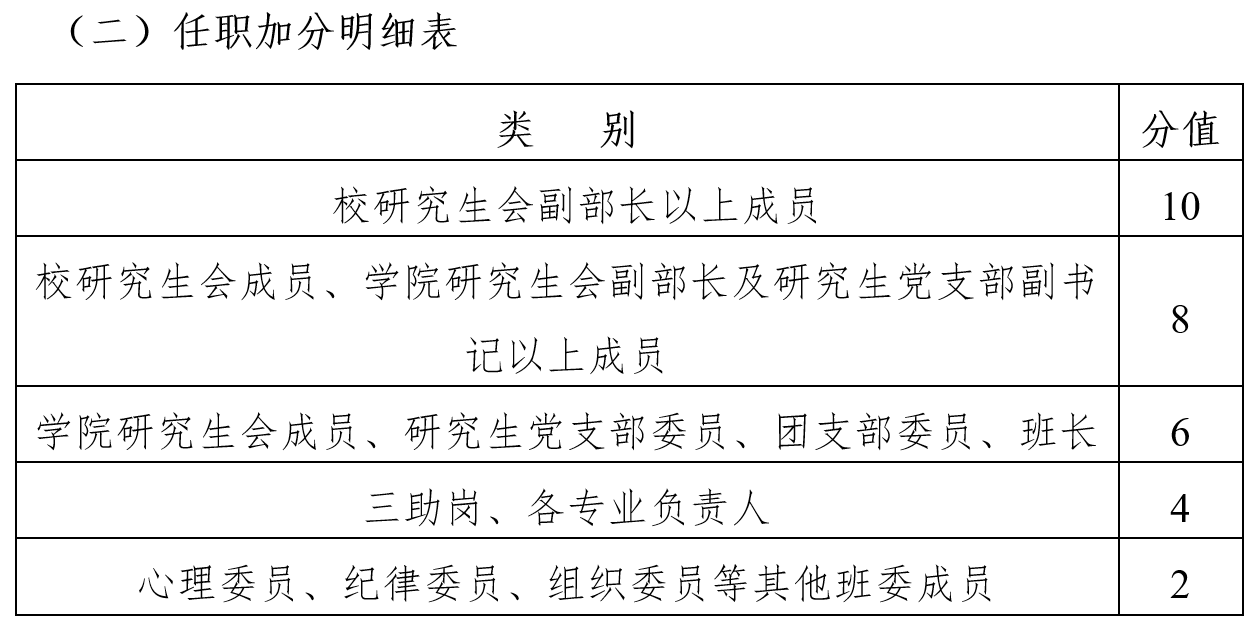 1. 任职期不得少于一年,中途因各种原因退出不予以加分。