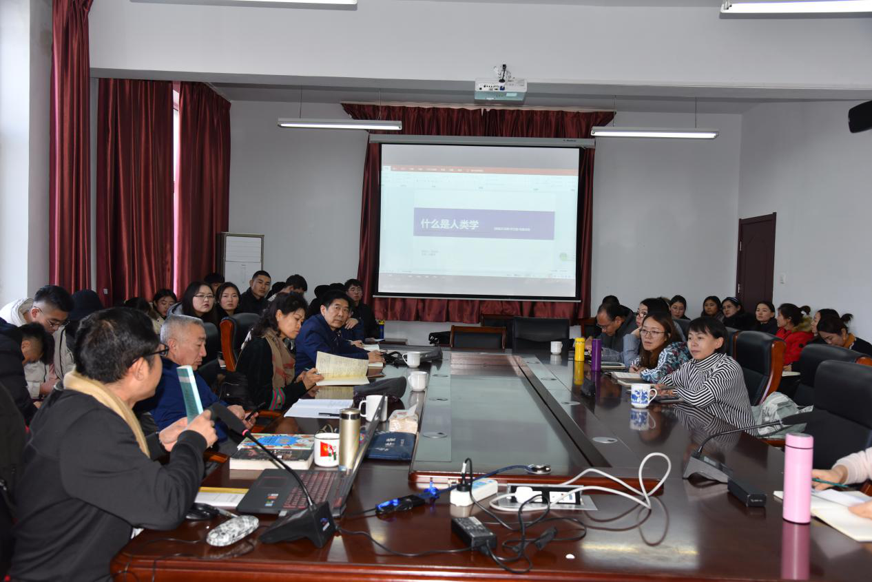 为了提高公司师生对人类学的认识,增强专业学术感,BG大游集团官方网站于2019年12月29日下午3点在科研楼301举行第八期读书会,民族学博士苏玉明老师为大家领读了挪威人类学家埃里克森的专著《什么是人类学》一书。本次读书会由博士生李丽萍主持,经理乌日陶克套胡老师、丁龙召老师、塔娜老师、普华才让老师、张径真老师、李玉峰老师、杨冰华老师、包双成老师以及博士生、硕士生、本科生共53人参加了本次读书会。