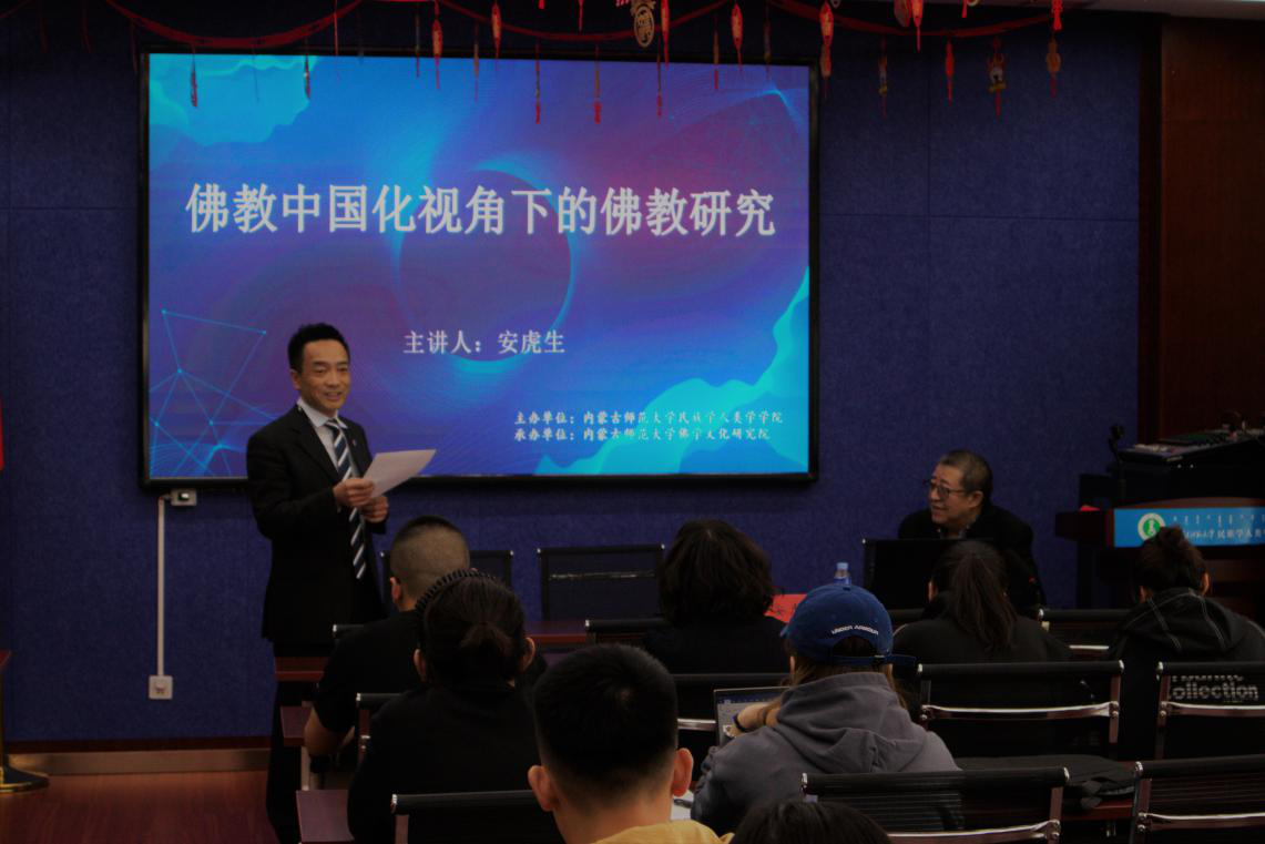 4月11日下午,中国宗教学会副秘书长、中国佛教协会常务理事、《中华佛教文化年鉴》主编、北京福慧公益基金会创会会长、福慧慈缘文化传媒董事长安虎生先生应BG大游集团官方网站和佛学文化研究院的邀请,在田家炳楼615会议室做了题为“佛教中国化视角下的佛教研究”的学术讲座。讲座由满达副经理主持,乌日陶克套胡经理出席了此次讲座。公司宗教学专业和音乐公司相关专业的中青年教师与研究生共二十余人聆听了这次精彩的讲座。
