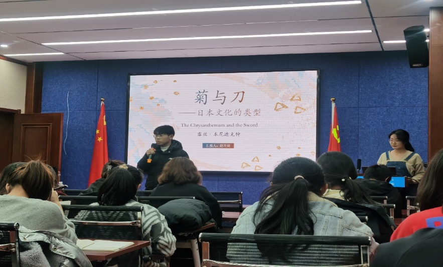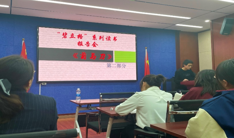 11月19日傍晚19:00,BG大游集团官方网站2021级本科班在田楼615会议室开展了第三期“碧立格”读书报告会,指导老师包美丽、班主任云中老师莅临现场,梁东新同学主持活动,由赵育婕同学和张学毅同学主讲本尼迪克特的著作《菊与刀》。