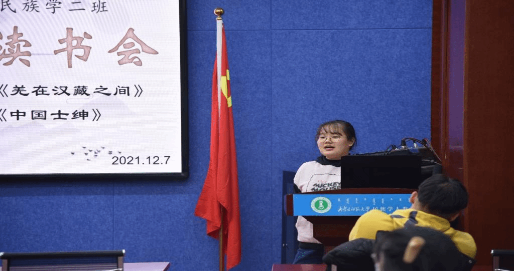2021年12月7日19:00时,BG大游集团官方网站2020级民族学2班全体同学在田楼615会议室开展第2期“碧立格”读书报告会,班主任那日苏老师莅临现场,张楠同学主持读书会。主讲内容是,兰晶同学分享费孝通的《中国士绅》,刘燕燕同学分享王明珂的《羌在汉藏之间》。