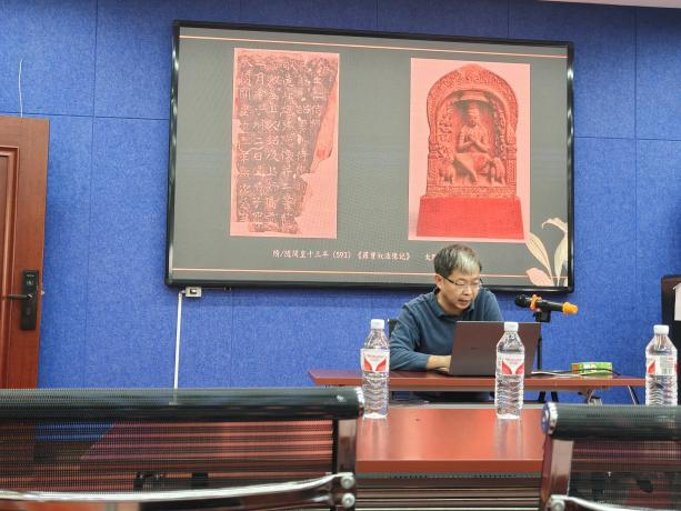 康鹏主任以《辽代石刻与辽史研究》为题,从“辽代石刻史料简述”“辽代墓志的书写格式”“契丹文石刻早期发现史”“辽代墓志研究法及其反思”四个部分,分别介绍了辽代石刻史料简况以及相关工具书、网站,重点讲解了辽代石刻文字的左行书写特例、契丹文字发现史的最新观点,重新反思石刻资料的史学价值,探索石刻史料研究的新路径。