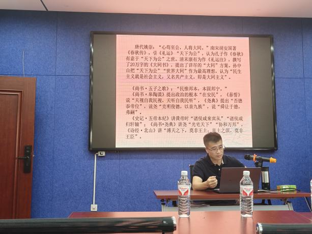 郑任钊教授以《从思想史论中华文明的突出特性》为题,分别从中华文明的连续性、创新性、统一性、包容性、和平性这五个突出特性展开讲授,并引经据典,指出这五个特性一方面通过中国五千年文明自身的发展历史可以得到清晰展现,另一方面就是通过中华传统思想文化得到展现。中华民族现代文明是在传统文明基础上创新性发展的现代文明,建设中华民族现代文明需要推动中华优秀传统文化创造性转化、创新性发展。中国有璀璨的思想宝库,历史上思想家群星闪耀,中华传统思想与传统价值观念在中华文明的发展过程中产生了不可忽视的作用,也必将继续发挥其重要作用。