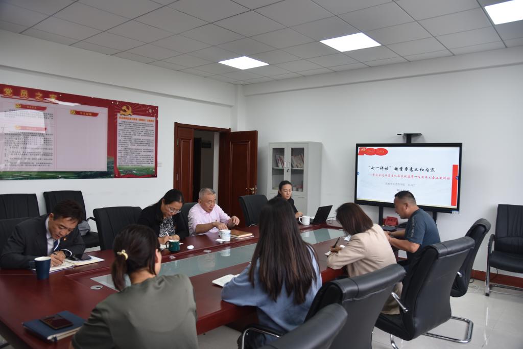 为党史教育专题组织生活会顺利开展,2021年8月30日下午在田楼611会议室,公司教工第二党支部邀请党总支书记包凤兰做了 题为“习近平总书记在庆祝建党100周年大会上的重要讲话精神”专题党课。本次党课由支部书记包双成主持,支部全体成员参加本次学习活动。
