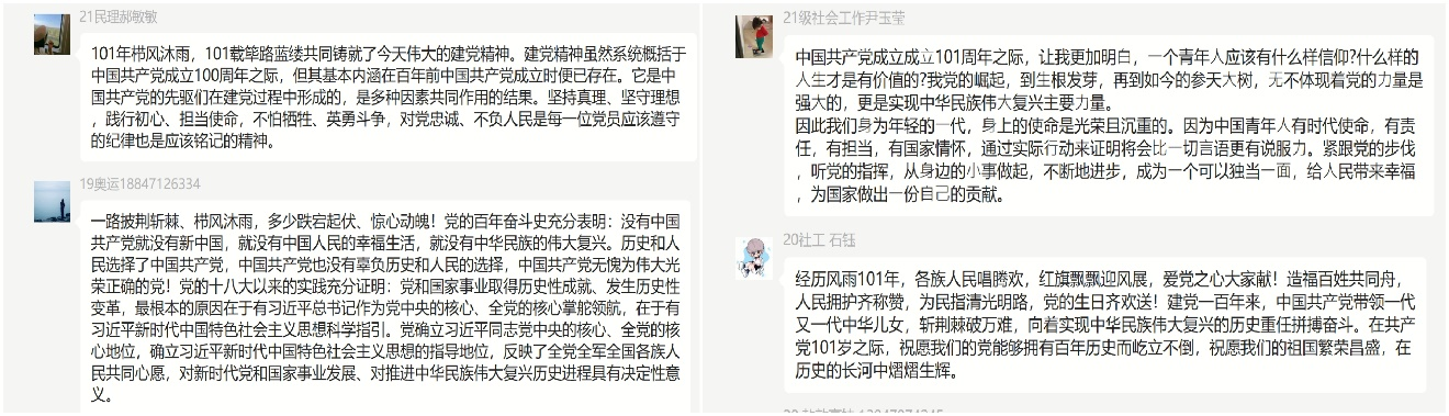 此次主题党日活动依托党员微信群开展,由党支部副书记桂梁同志带领全体党员同志开展以“中国共产党成立101周年,弘扬伟大建党精神”为主题的线上自主学习活动,党员同志们热烈祝贺党的101岁的生日并交流学习心得,爱国爱党情怀高涨,同志们纷纷表示要以革命先烈为榜样,认真学习他们不怕流血牺牲,甘于无私奉献的精神,坚定理想信念、不忘初心、牢记使命,为推动党的事业贡献自己的力量。