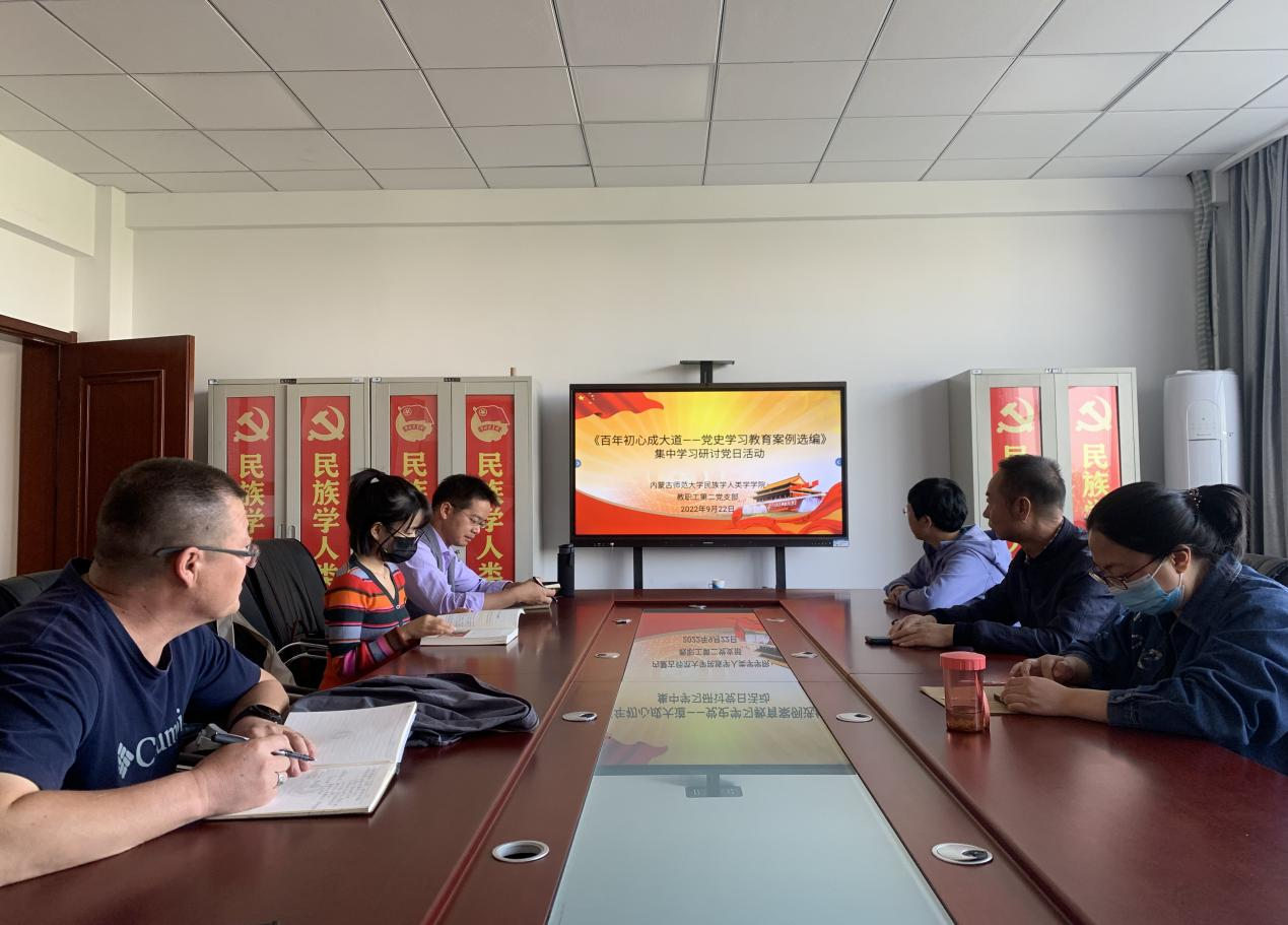 2022年9月22日下午,教工第二党支部于田楼611党群活动中心召开《百年初心成大道——党史学习教育案例选编》集中学习研讨会。会议由第二党支部书记刘燕飞主持,白铁柱、额尔德木图、陆一琼、韦兰海、乌尼日其其格等党员参加会议。